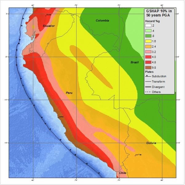 Geofísica Andina Consultores S.A.C. brinda el servicio de evaluación del peligro o amenaza sísmica por los métodos probabilísticos y determinísticos, los cuales consisten en la determinación de los niveles de aceleración sísmica de diseño producto de las características de la sismicidad de la zona de estudio. A través de la compilación de catálogos de sismos históricos e instrumentales se realiza la caracterización de fuentes sismogénicas según su mecanismo focal y con la ayuda de modelos de predicción del movimiento del suelo apropiados se realiza el cálculo de espectros de respuesta específicos del sitio.