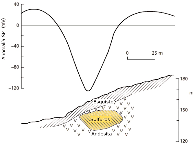 Los resultados de las mediciones de Potencial espontáneo se representan en forma de mapa de equipotenciales. Y el análisis del mapa lleva a la localización de los cuerpos productores de la Polarización espontanea.